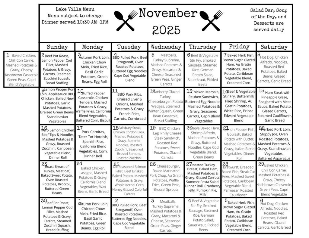 Lake Villa is now open on weekends! Public dining hours are each day, 10:30am-1pm.