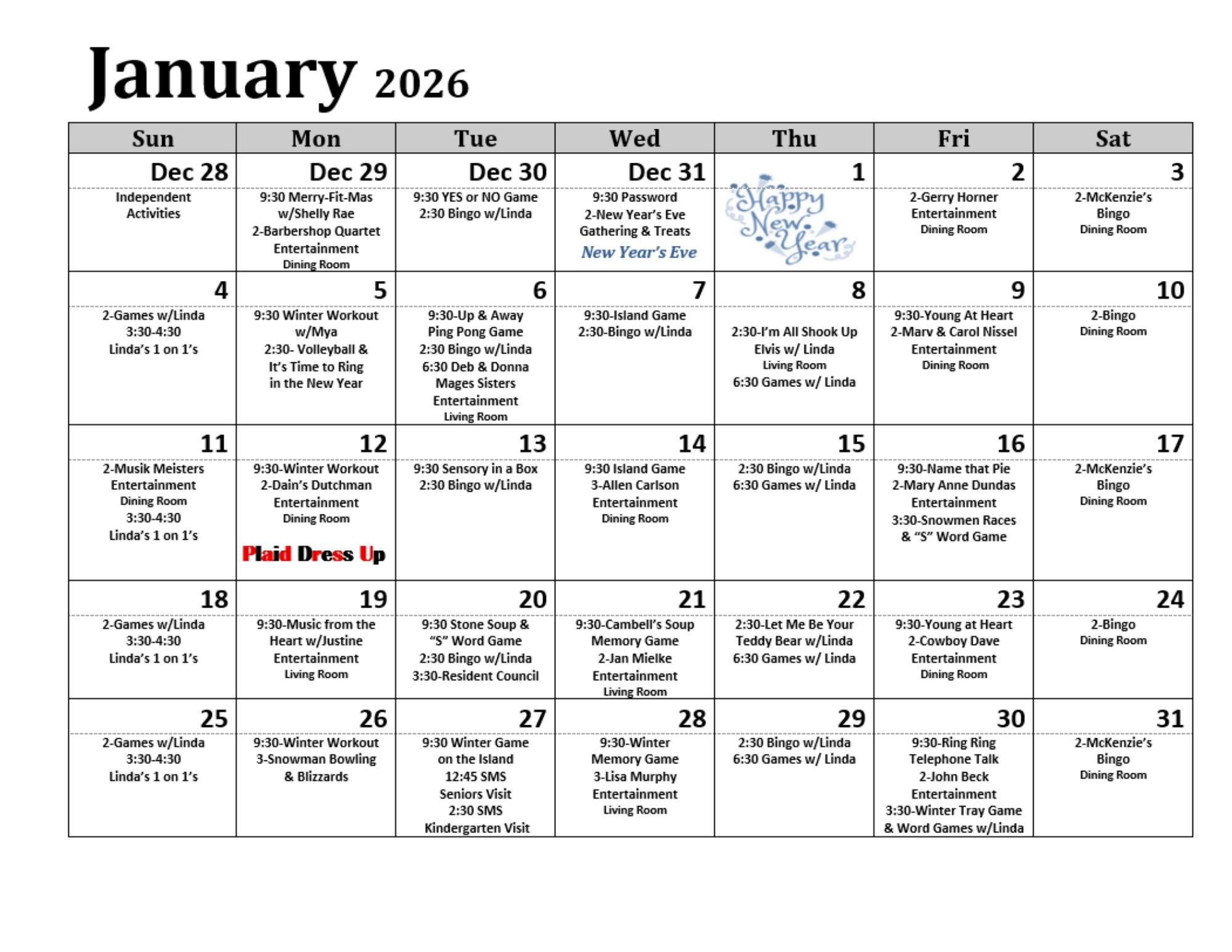 Check out to see what we have planned for this month. Changes may occur without notice.